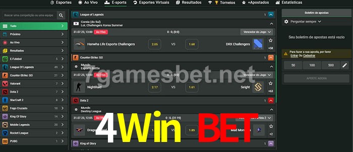O 4Win Bet oferece uma grande seleção de opções de apostas em e-sports com probabilidades competitivas